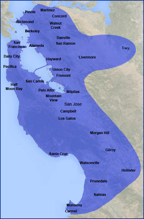 We provide licensed backflow services throughout the entire San Francisco Bay Area, East Bay, San Mateo & Santa Clara Counties. Our service area extends eastward to the Livermore area, providing coverage to all Tri-Valley communities. Our southernmost boundry extends our services to regions such as Hollister, Prunedale, and Salinas. Up and down the coast, we operate from as far south as Carmel, throughout the Monterey Bay area, and all the way North to San Francisco and its outlying communities. If you are in or near these areas, call us today!